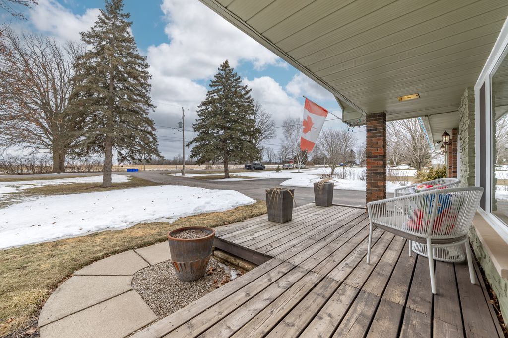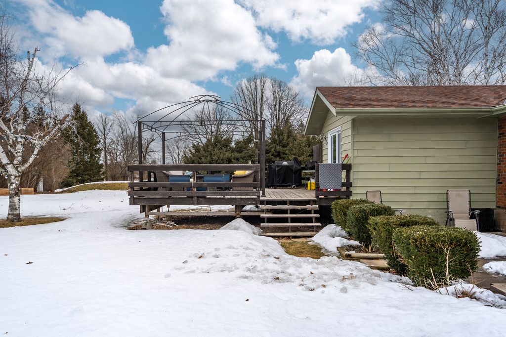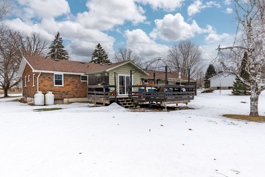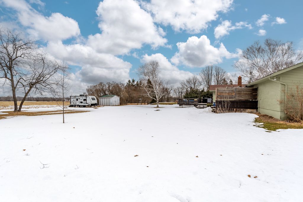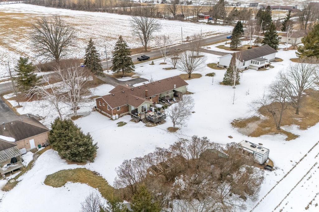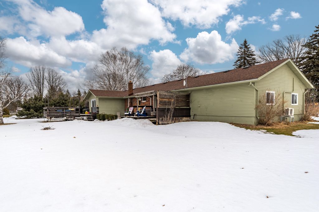 The property offers privacy on both sides, with unobstructed views at the front and back. The 168' wide lot ensures a sense of seclusion, while the paved driveway provides parking for up to 8 vehicles. A 12x12 shed in the backyard sits on a concrete slab and is equipped with hydro and water.