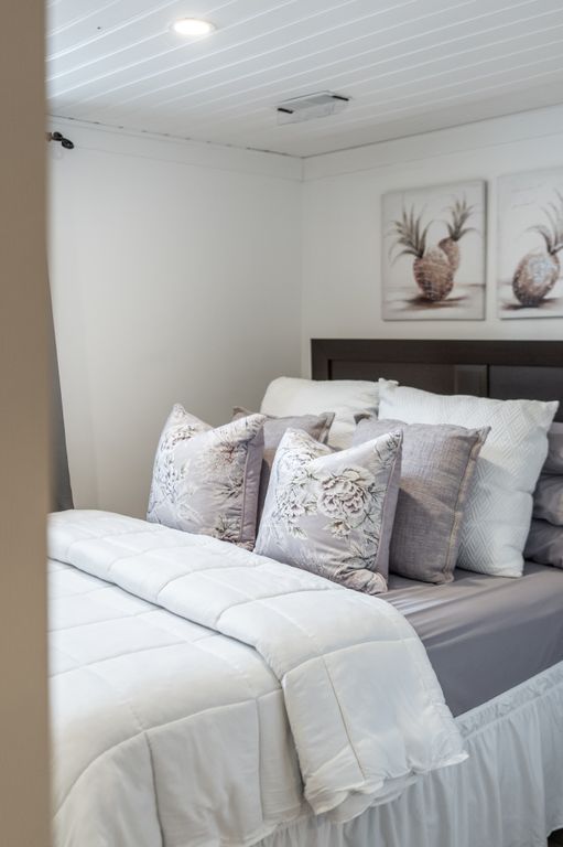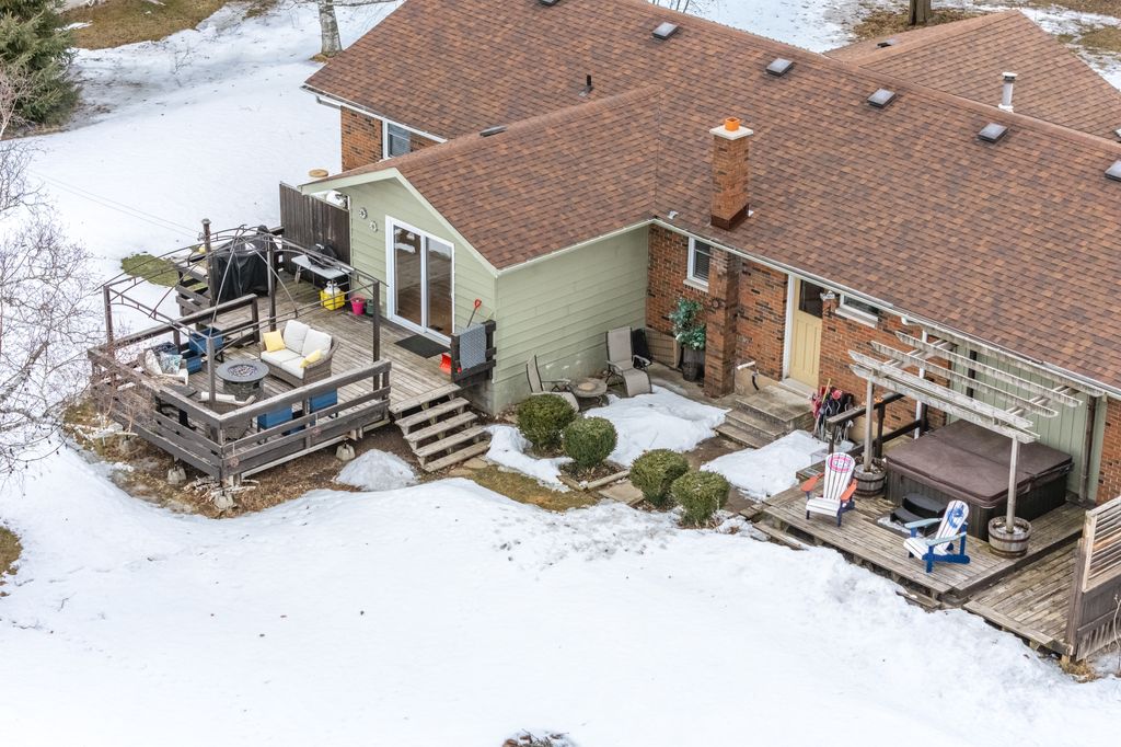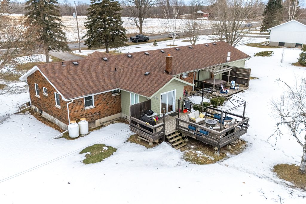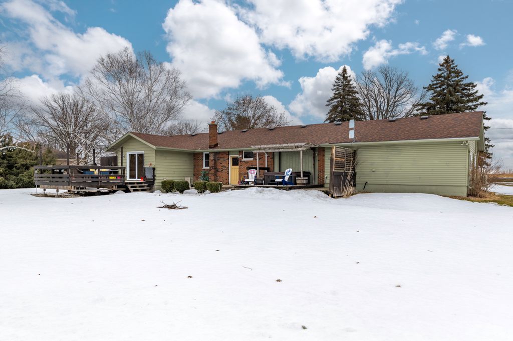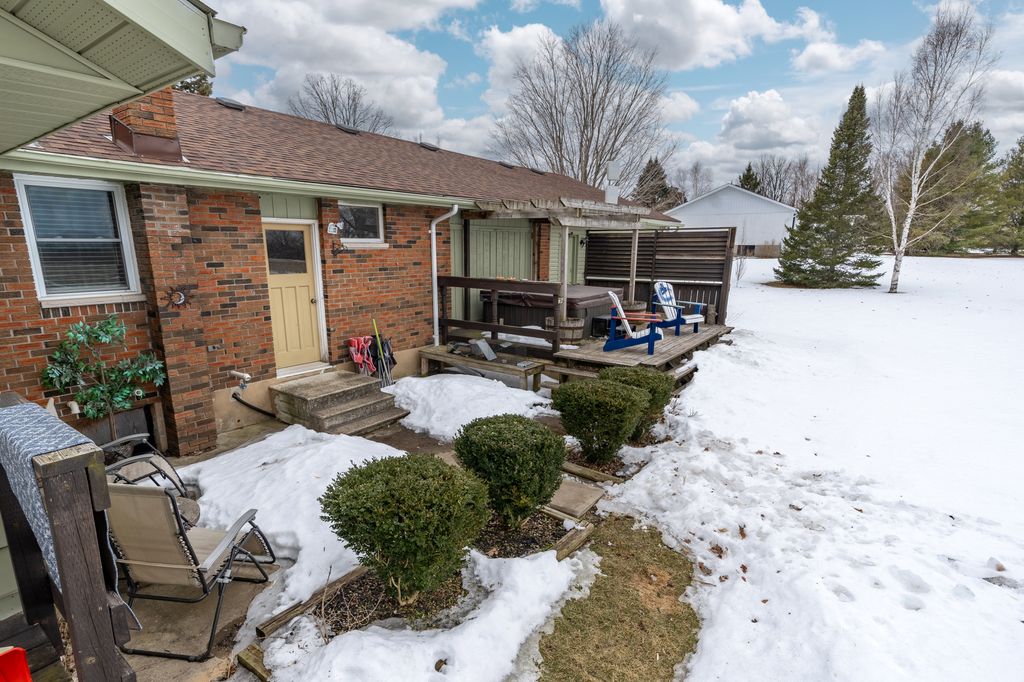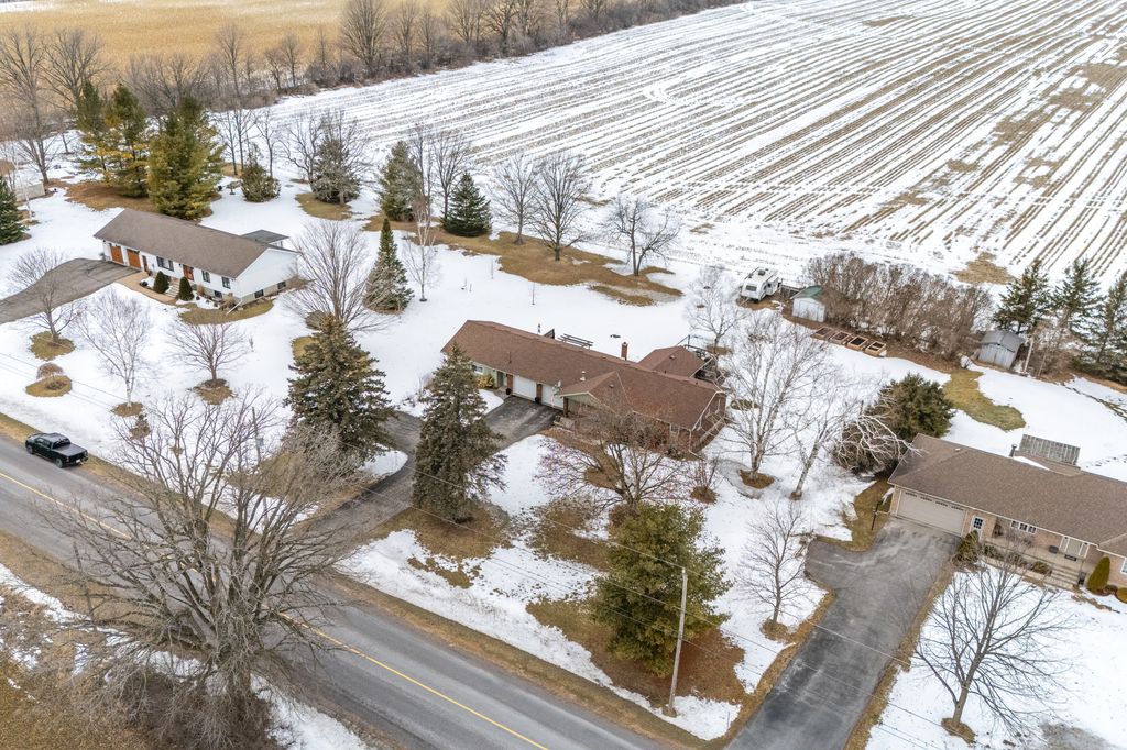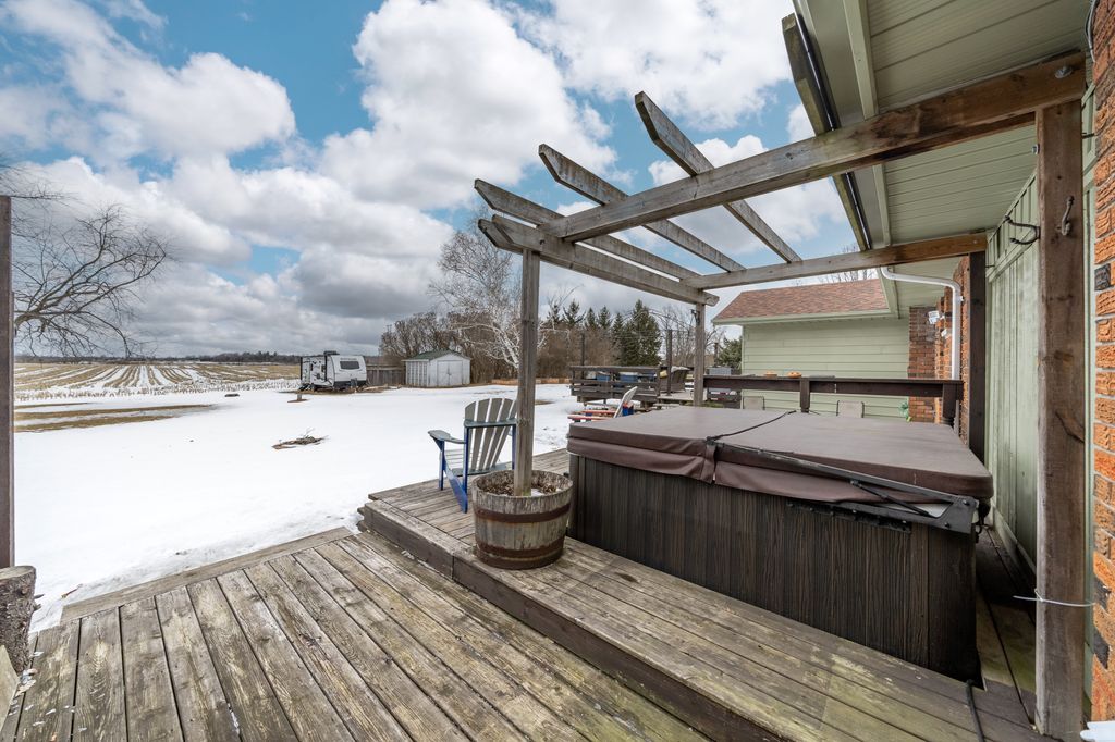 The property offers privacy on both sides, with unobstructed views at the front and back. The 168' wide lot ensures a sense of seclusion, while the paved driveway provides parking for up to 8 vehicles. A 12x12 shed in the backyard sits on a concrete slab and is equipped with hydro and water.