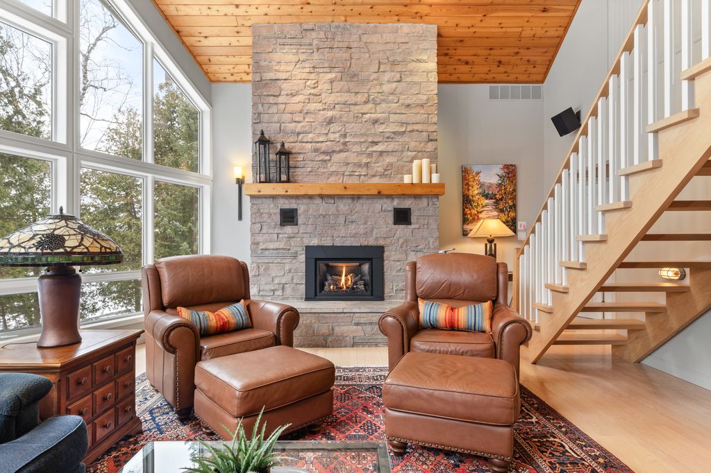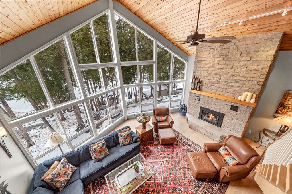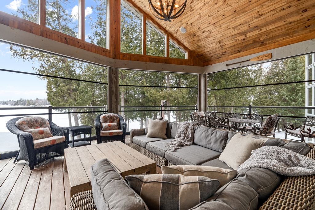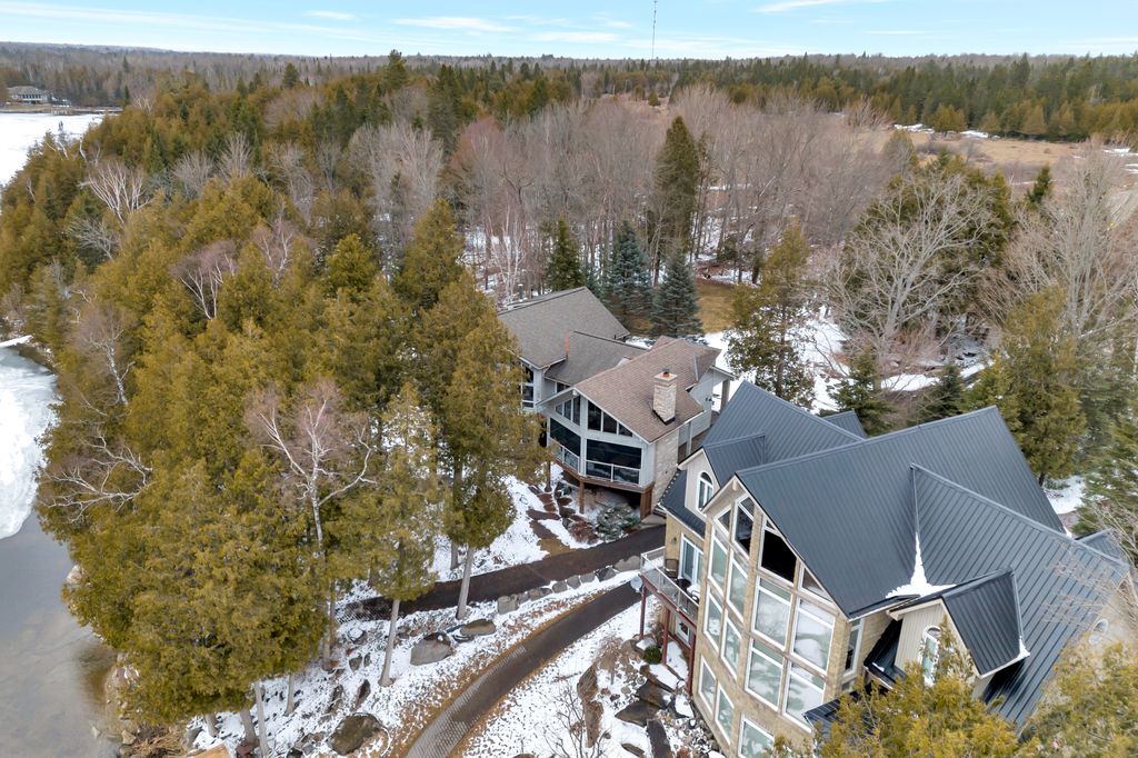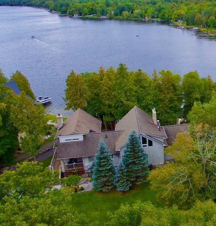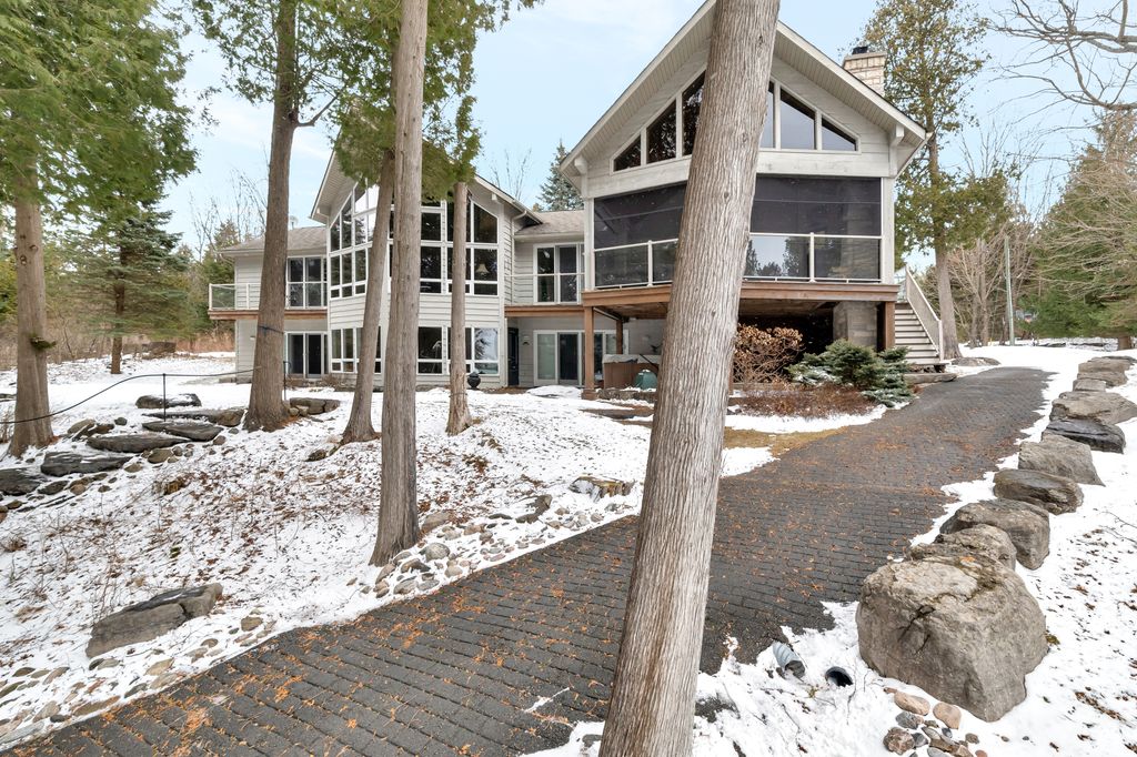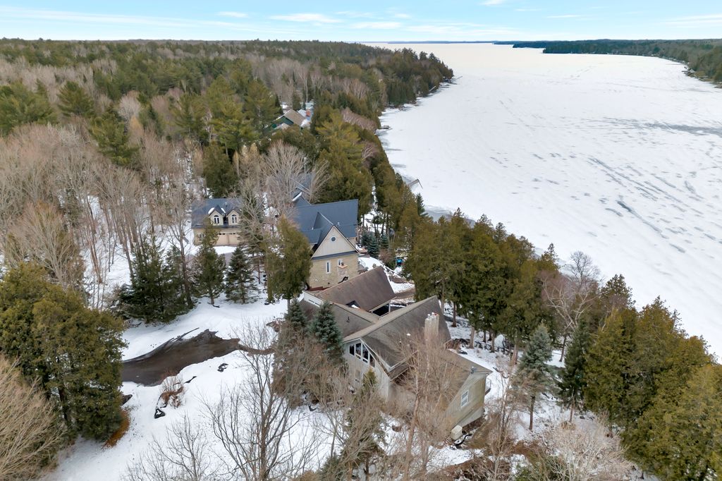 BALSAM LAKE - DOUBLE LOT - 178 FEET OF WATERFRONTAGE - OFFERED FURNISHED - Experience the best of BALSAM LAKE with this stunning waterfront retreat perfectly situated in quiet calm bay on the highly sought-after Indian Point. Enjoy incredible privacy surrounded by larger properties, breathtaking long lake views and unforgettable summer sunsets. This beautifully updated and meticulously maintained 4,700 sq. ft. Custom built cottage offers a warm and inviting atmosphere. The open-concept main level features a great room with cathedral ceilings and cozy fireplace overlooking the lake. A well-appointed chefs kitchen with top of the line Jenn-Air appliances, 8'x 4' centre island and walkout to Spectacular Kawartha room with floor to ceiling stone fireplace. Spacious dining room with 6'x6' dining table and 8 chairs. Main-floor Primary bedroom, with fireplace and 4-piece bath. Open concept loft make for a great office or additional sleeping area with its own 3 piece bath. The full basement has another large entertainment area with floor to ceiling windows overlooking the lake, wet bar, custom entertainment wall unit, floor to ceiling fireplace, 3 large walkouts, 2 additional bedrooms and a convenient 3 piece bath. Separate large 3 car garage, professionally landscaped, inground irrigation, abundance of docks and boat lifts ... SO MUCH MORE.