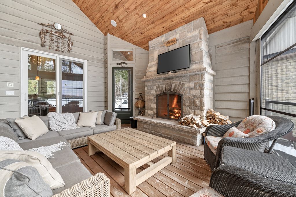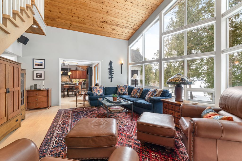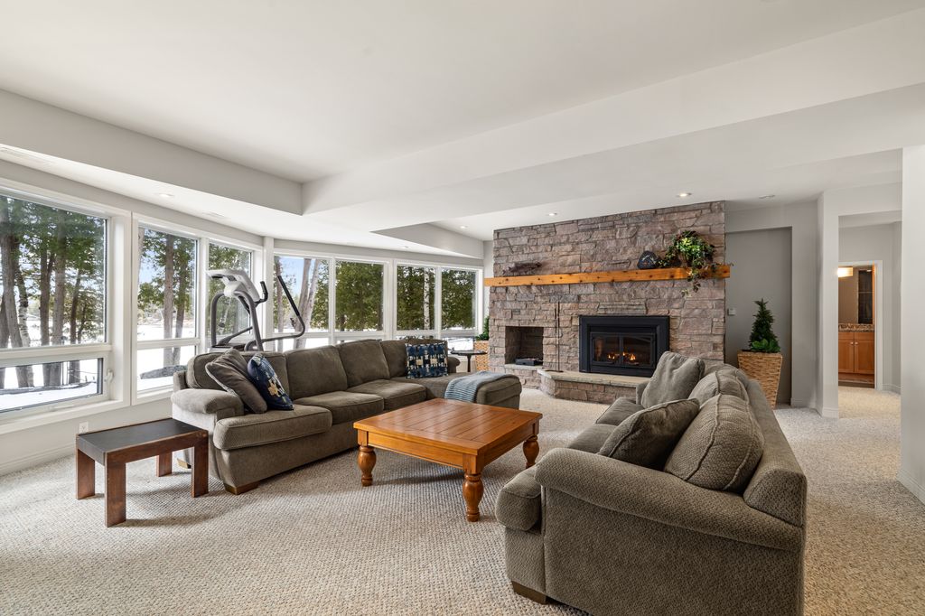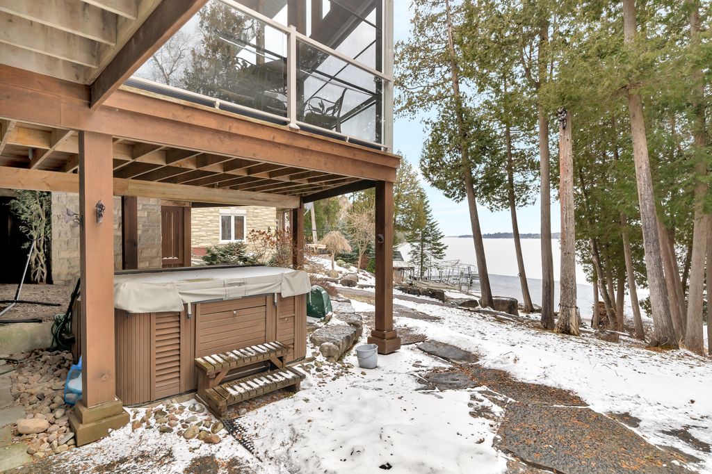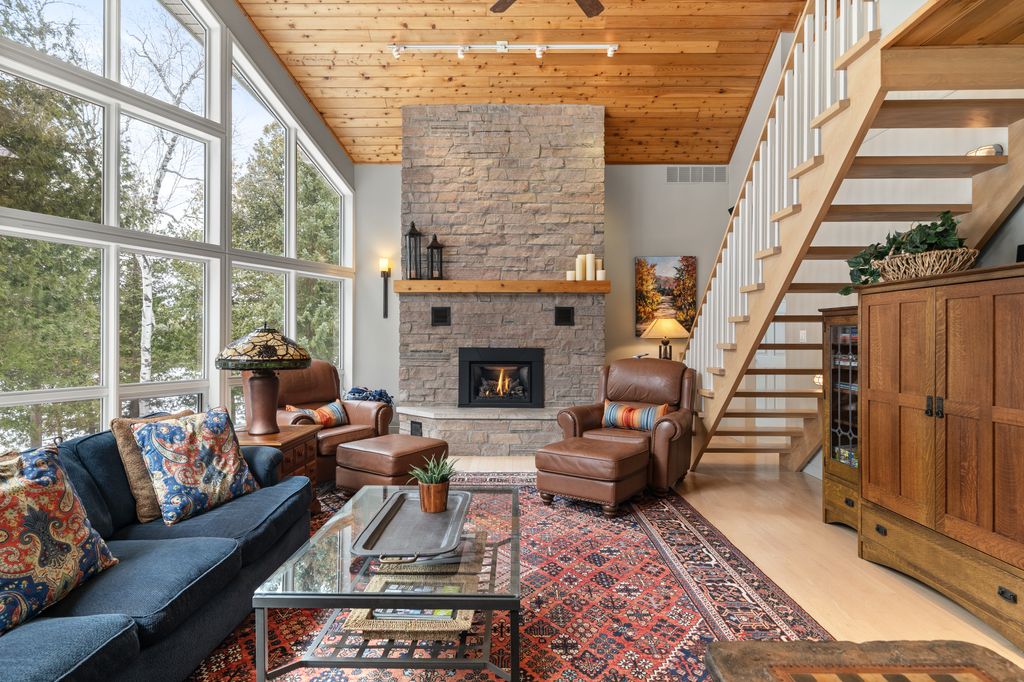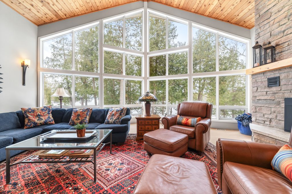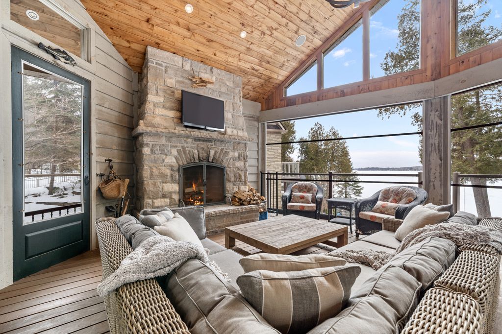 BALSAM LAKE - DOUBLE LOT - 178 FEET OF WATERFRONTAGE - OFFERED FURNISHED - Experience the best of BALSAM LAKE with this stunning waterfront retreat perfectly situated in quiet calm bay on the highly sought-after Indian Point. Enjoy incredible privacy surrounded by larger properties, breathtaking long lake views and unforgettable summer sunsets. This beautifully updated and meticulously maintained 4,700 sq. ft. Custom built cottage offers a warm and inviting atmosphere. The open-concept main level features a great room with cathedral ceilings and cozy fireplace overlooking the lake. A well-appointed chefs kitchen with top of the line Jenn-Air appliances, 8'x 4' centre island and walkout to Spectacular Kawartha room with floor to ceiling stone fireplace. Spacious dining room with 6'x6' dining table and 8 chairs. Main-floor Primary bedroom, with fireplace and 4-piece bath. Open concept loft make for a great office or additional sleeping area with its own 3 piece bath. The full basement has another large entertainment area with floor to ceiling windows overlooking the lake, wet bar, custom entertainment wall unit, floor to ceiling fireplace, 3 large walkouts, 2 additional bedrooms and a convenient 3 piece bath. Separate large 3 car garage, professionally landscaped, inground irrigation, abundance of docks and boat lifts ... SO MUCH MORE.